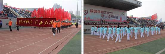 4月26日下午16时,我校2019年校园体育文化节暨田径运动会闭幕式在《把一切献给党》的歌曲中拉开帷幕。神采奕奕的方阵队员身着各具特色的院服,迈着整齐划一的步伐走过主席台,迎接闭幕式。
