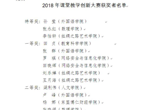 根据学校《关于表彰2018年课堂教学创新大赛获奖者的决定》文件,我院教育技术学专业田贞老师喜获大赛一等奖。