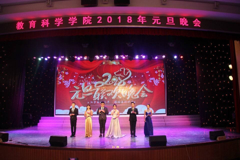 晚会分为上半场“品古韵之魂,传华夏之魄”与下半场“思想的碰撞,21世纪新的时代”。首先由学生会表演的交际舞拉开了元旦晚会的帷幕。接下来是由大一新生严艺唯等同学带来的小品《大话西游》。小品演绎了唐生师徒四人西天取经发生的趣事,令同学们笑声不断。然后由王静、郝艺唯等带来的古典舞《大鱼》,李颖等带来的歌曲《你曾是少年》再一次让现场沸腾。上半场结束,激动人心的抽奖活动令现场气氛达到最高潮。下半场开场由白芈等带来的舞蹈《Wow war tonight》使全场沸腾。紧接着王国庆的《魔术》令现场观众大呼神奇,小品《总监驾到之青春校园》爆笑上演,舞蹈《Sexy honey》、Hip-hop《教科有嘻哈》、舞蹈《没有明天》等节目先后上场。最令同学们惊喜的是由学生会带来的歌曲《Shape of you》,我们的歌手在观众席中开场,这使得在场同学尖叫声连连,作为压轴好戏出场的则是爵士舞《As if it is your last BABY》精彩的表演令全场欢呼声不断,最后在六位主持人的祝福声中完美落幕。