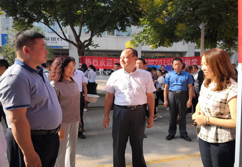 9点左右,我校卓宇书记,赵曼校长等一行领导关切的询问了我院新生报到情况,指导迎新工作,并慰问了一直保持热情工作的教师及学生工作人员。