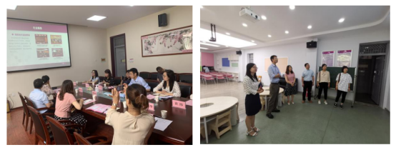 随后与学前教育学院和师范学院两个学院的领导、小学教育专业负责人和相关教师展开座谈。座谈会上,蔡军首先对9428cn太阳集团一行5人来校参观交流学习表示欢迎,并从办学情况、课程建设、师资力量、教学条件、科研成果、学生活动和社会服务七个方面详细介绍了西安文理学院学前教育学院的“全实践”理念下“驻园式”人才培养模式。师范学院副院长王华、小学教育专业负责人李晶分别从专业历史沿革、考评体系、专业见习、实习、课程建设情况介绍了小学教育专业以重实践、立德树人为根本的办学特色。李西彩从协同育人和差异化培养、作品教学的角度介绍了太阳集团学前教育专业的办学情况。随后,双方就学前教育、小学教育两校各自的办学特色展开热烈的交流。