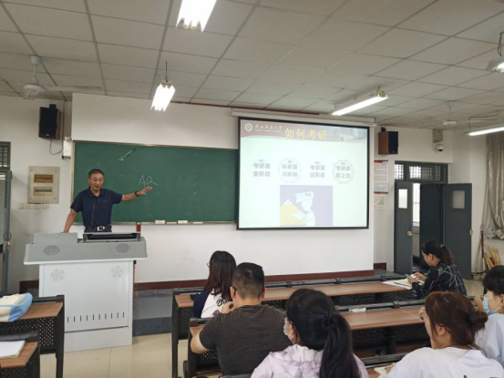 郭教授结合自身考研经历,从为什么考研、如何考研两个方面跟大家做了交流分享。一是鼓励考研学生,一定要想清楚自己为什么考研,要让自己纯粹的认真的读一场书,进行批判性的阅读,为后期的研究工作奠定基础。二是结合实际,阐述了在考研的准备、复习、面试和调剂等不同阶段应该注意的问题,并重点分析了考研的时间准备、心理准备、身体准备、环境准备和知识准备,以及考研复习的具体方法和策略。