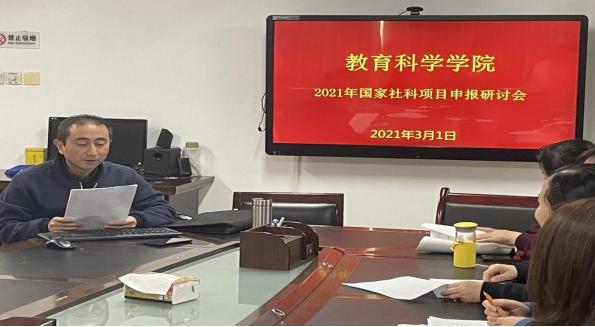2021年3月1日下午2点,9428cn太阳集团在知新楼2218会议室召开国家社科项目申报研讨会。学院学术委员会委员肖自明、李西彩、严苏凤、张西宁、王奎群、马雅菊等教师参加了会议。会议由院学术委员会副主任马雅菊主持。