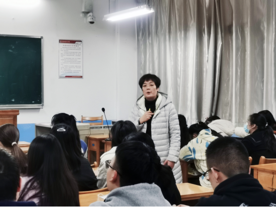 杨方琦介绍了学校教务处开设红烛讲坛的目的和意义,简要介绍了杨晓蓉的个人经历与教学成就,希望同学们以杨晓蓉主任为榜样,潜心学习,树立信念,勤学苦练,朝着“四有”好老师的目标迈进。