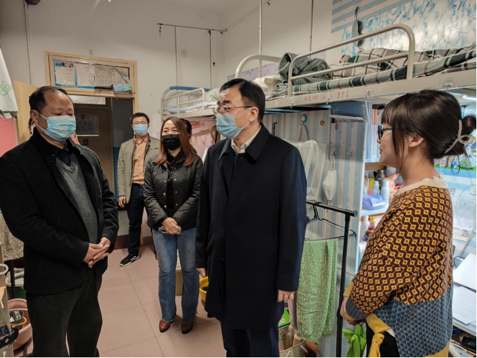 在包联的318宿舍,张守华与学生亲切交流,细心询问学生在线学习、研究生考试复习备考、教育实习训练、就业创业意愿等情况,鼓励学生学好专业知识,树立做大国良师的远大目标。在静态管理宿舍,张守华指出要牢固树立“自身健康第一责任人”意识,严格遵守学校和属地的疫情防控政策,按时参加学校组织的全员核酸检测,勤洗手、戴口罩,做好宿舍及个人卫生,有任何困难要第一时间找辅导员、找学校。走访过程中,张守华现场查看了特殊宿舍和建设学生自习室的备用宿舍,认真听取大家对学生宿舍管理服务工作的意见和建议。