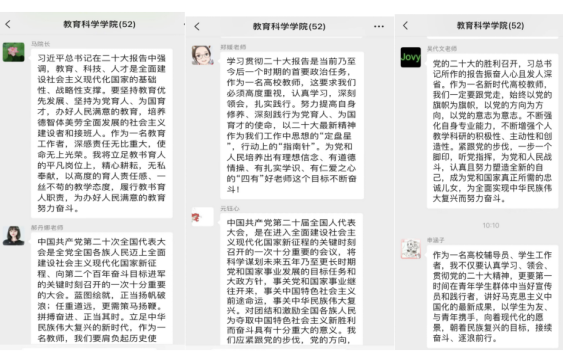 梦想熠熠、使命灼灼。会后我院党员干部和各专业教师积极交流心得,深入学习二十大报告的核心精神和主要内容,不断提升自身的政治素养和责任意识,树立崇高的人生理想,肩负起塑造灵魂、塑造生命、塑造新人的时代重任,敢为人先、敢于突破,敢于创新,以实际行动来践行教书育人的使命和担当,奋力谱写全面建设社会主义现代化国家新篇章!