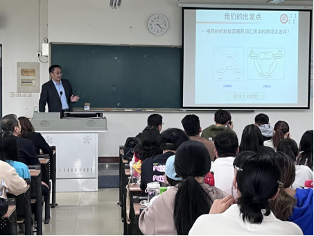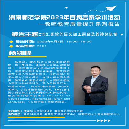 第四场报告于5月8日在知新楼2101举行,学院特邀陕西师范大学博士生导师杨剑峰教授开展题为“词汇阅读的语义加工通路及其神经机制”的报告,9428cn太阳集团全体无课教师参加了会议,报告由学院院长李西彩主持。