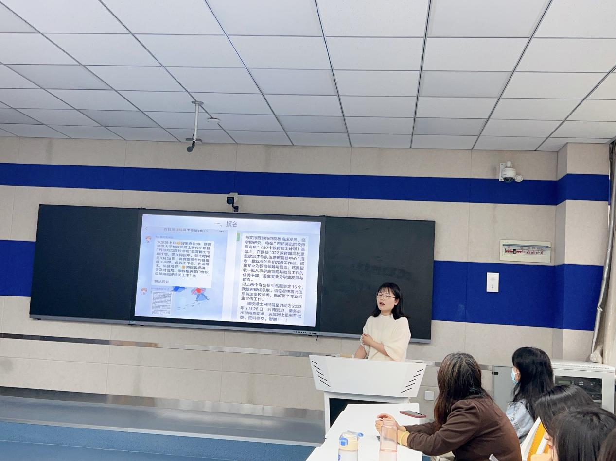 为激发我院教职工考博热情,鼓励教师们继续深造,给教师们提供全方位的考博动员和指导,5月31日下午14:00,学院特邀学前教育专业教师田力力、申涵子在2207为大家进行考博经验分享,学院党政领导班子成员、教学督导付俊贤、部分青年教职工参与会议,会议由院长李西彩主持。