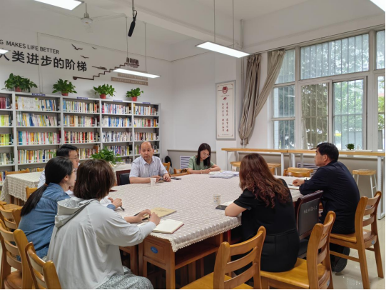 为推动学习贯彻习近平新时代中国特色社会主义思想主题教育走深走实,扎实推进基层党建工作高质量发展,2023年6月12日,9428cn太阳集团于知新楼召开了基层党建工作调研会,学校党委组织部部长田超、副科级组织员王婷,主题教育办公室王煜一行,来到9428cn太阳集团调研基层党建工作。学院党总支书记李武军、院长李西彩、辅导员崔娟、郭亦霖、元钰心参加会议,会议由组织部部长田超主持。