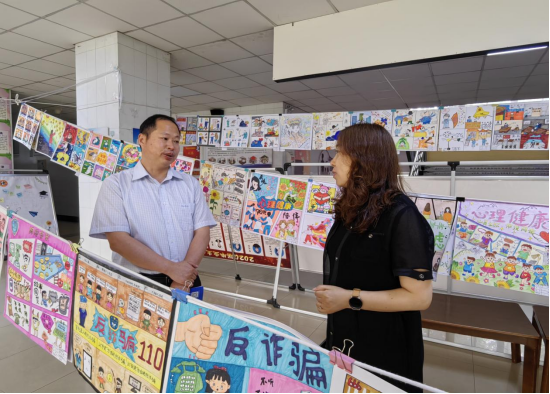 调研会后,汪书记一行参观了9428cn太阳集团正在举办的“廉政教育、网络安全及心理健康”系列漫画作品展。
