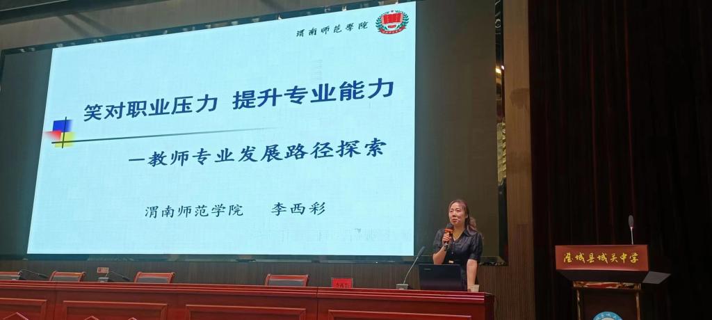 为深入学习贯彻习近平新时代中国特色社会主义思想,检验主题教育成效,做好我校2023年乡村振兴“双百工程”,助力澄县教育发展,8月23日,我院院长李西彩教授赴澄城县开展教师专业发展路径专题讲座。