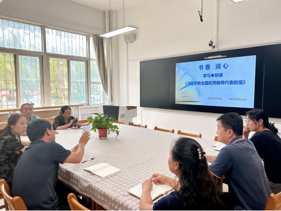 会议伊始,全体与会人员观看学习视频:《习近平的教师情》,李武军领学《习近平致全国优秀教师代表的信》,李西彩领学《习近平致信全国优秀教师代表强调 大力弘扬教育家精神,为强国建设民族复兴伟业作出新的更大贡献,向全国广大教师和教育工作者致以节日问候和诚挚祝福》,与会教师结合自己工作学习进行了讨论交流。
