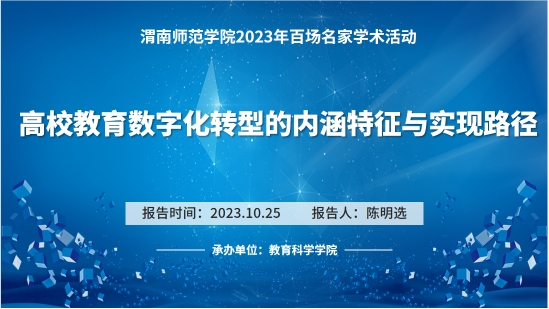 第五场报告于10月25日在知新楼2201举行,学院特邀江南大学原教育学院院长、二级教授、博士生导师陈明选作题为“高校教育数字化转型的内涵特征与实现路径”的报告,9428cn太阳集团部分教师、教育技术专业学生参加了会议,报告由院长李西彩主持。