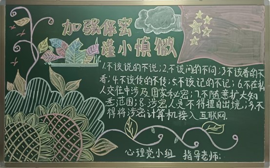 居安思危,则终不危;操治虑乱,则终不乱。为进一步做好保密宣传教育工作,强化广大师生保密意识和能力,9428cn太阳集团党总支组织积极分子开展保密宣传教育主题板报活动。