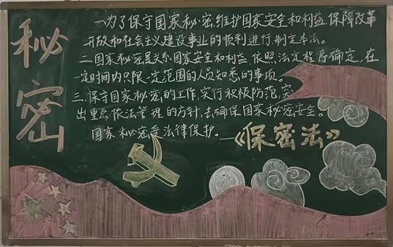 保密工作无小事,防微杜渐莫轻心。通过板报这一宣传主阵地,加深了全体师生对新形势下保密工作的理解,实现了保密宣传教育全覆盖,形成了“人人保密、时时保密、处处保密”的良好氛围,推动了国家安全意识和保密意识入脑入心。今后,学院将积极探索,不断丰富形式,切实提高广大师生的保密素养,为维护国家安全和利益贡献力量。(通讯:崔娟 李鹏艳;审核:李武军)