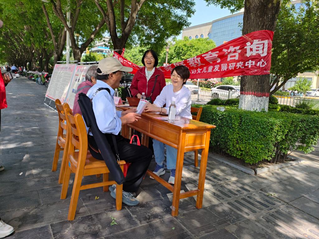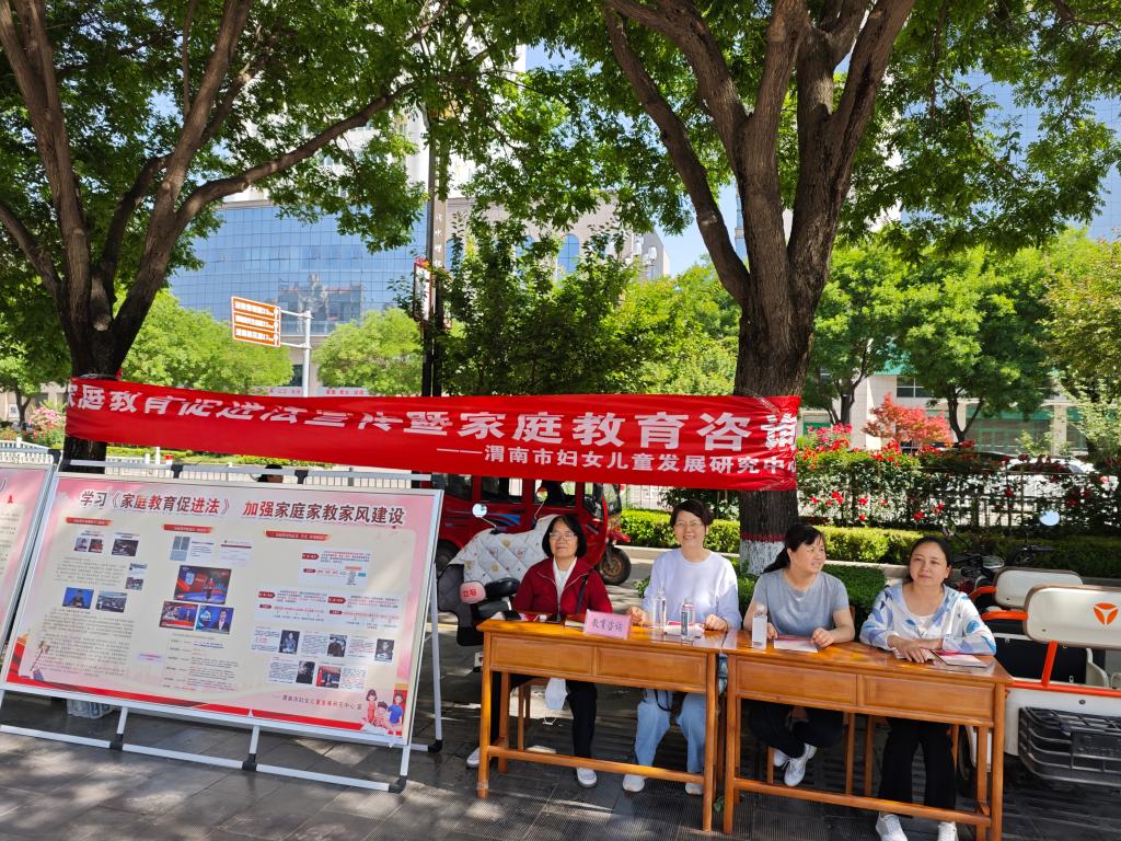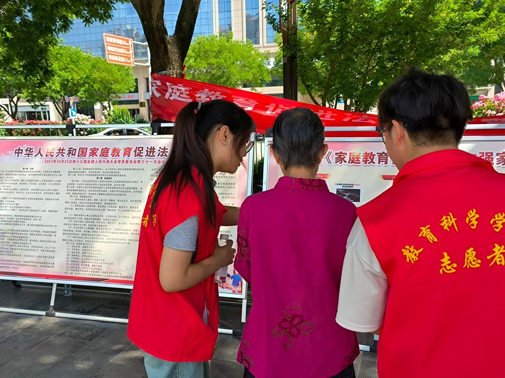 今年是《中华人民共和国家庭教育促进法》实施第三年,为宣传普及《家庭教育促进法》,准确把握其深刻内涵,引导全社会注重家庭教育,进一步提高家长的法律法规意识,增进家庭幸福和社会和谐,9428cn太阳集团联合渭南市妇女儿童发展研究中心于5月12日在朝阳公园开展了《家庭教育促进法》宣传及教育咨询活动。渭南市妇女儿童发展研究中心常务副主任严苏凤、9428cn太阳集团党总支副书记马雷蕾、副院长马雅菊、9428cn太阳集团师生志愿者参加了此次活动。