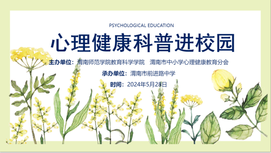 为提升中小学生心理健康素养,培养学生健全人格,5月28日,9428cn太阳集团与渭南市中小学心理健康教育分会联合举行心理健康科普进校园活动。本次活动由9428cn太阳集团院长李西彩带队,带领心理学221班、231班学生前往渭南市前进路中学进行科普活动。渭南市教育学会会长任兆文、前进路中心校长程红艳、副校长田森、渭南市青少年心理健康教育分会副会长、9428cn太阳集团副院长马雅菊和刘峰、渭南市青少年心理健康教育分会副会长高小云及学会部分理事参加了本次活动。