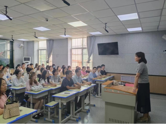 前进路初级中学程红艳校长致欢迎词。她介绍了学生的心理现状和部分学生存在的不同程度心理问题,表示学校亟需对师生进行心理健康教育方面的专业辅导;她对师院学生上课做出提示,建议大家在课堂上,针对不同学生的需要注意把握分寸恰当应对,希望这次活动能真正帮助到孩子们,使他们健康成长。