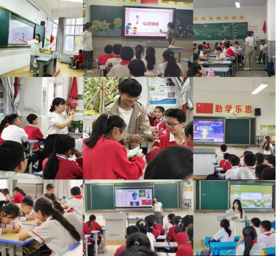 随后,同学们在各班主任的带领下分别进入五年级、六年级16个班,围绕儿童常见的人际关系、情绪调节、异性交往等内容,结合游戏开展了心理健康科普宣传活动,并针对每个班学生学习生活中的问题进行了现场心理咨询活动。