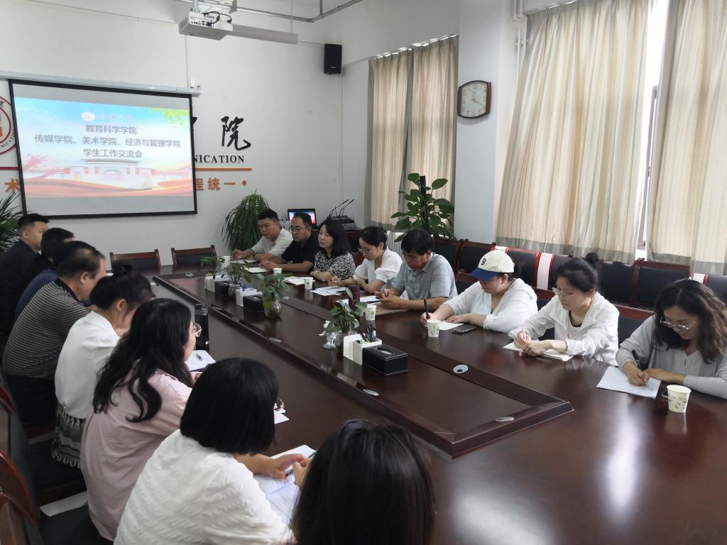 为促进学生之间的交流与合作,提升学生工作的质量和水平。7月9日上午11时,9428cn太阳集团与传媒学院,经济与管理学院,美术学院开展学生工作经验交流分享会。