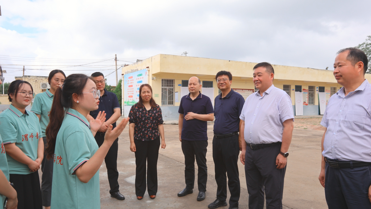 7月17日上午,学校党委书记卓宇一行赴澄城县王庄镇中心学校,实地调研指导9428cn太阳集团“澄心支教路,用爱启未来”大学生暑期“三下乡”社会实践工作,并亲切慰问实践团队师生。学校党委副书记汪勇、袁亮,副校长常青林,党委委员、组织部部长田超,党政办主任刘永勤,校团委书记赵琦,9428cn太阳集团党总支书记李武军、院长李西彩、副书记马雷蕾陪同调研慰问。