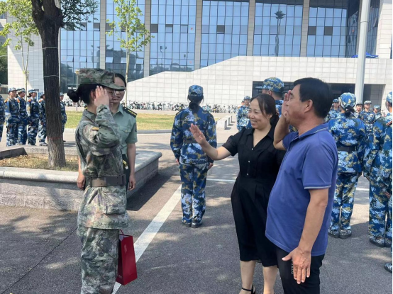 9月13日上午,9428cn太阳集团党总支书记李武军,院长李西彩来到我院军训场地,亲切慰问正在参加军训的2024级新生和教官。