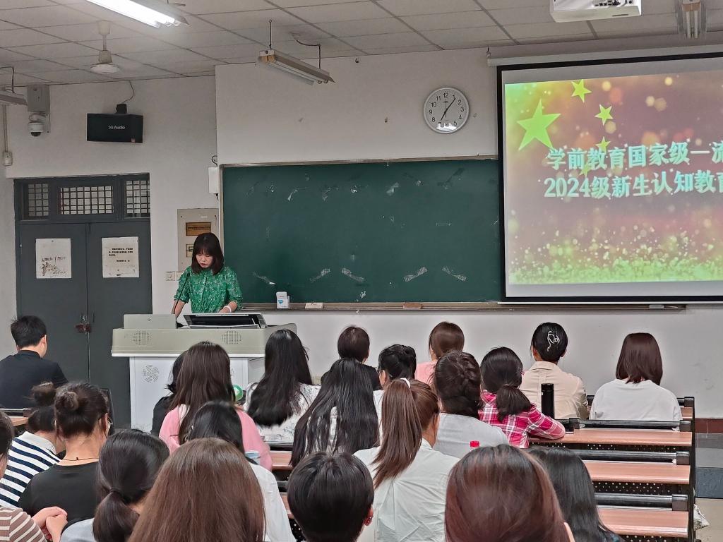 为了帮助新生更好的认识学前教育专业,合理规划四年的学习生活。9月26日晚7点,学前教育2024级专业认知教育大会暨卓越班结业典礼在2101教室举行,9428cn太阳集团院长,学前教育专业带头人李西彩、学前教育专业负责人蔡海怡、学前教育专业全体专任教师、2024级全体学生、22、23级部分学生及获奖学生参会,大会由学生任礼铭主持。