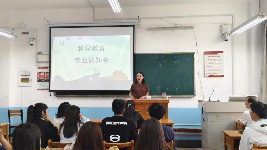 为帮助学生更好的了解所学专业,更快速融入大学生活,2024年9月26日,科学教育专业在2217开展了2024级的新生专业认知会。参加专业认知会的有:王奎群教授,郑媛老师,赵丹卉老师,郝丹娜老师,认知会由科教专业建设负责人郝丹娜老师主持。