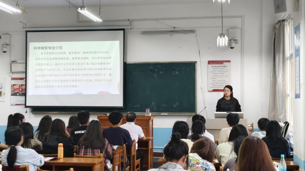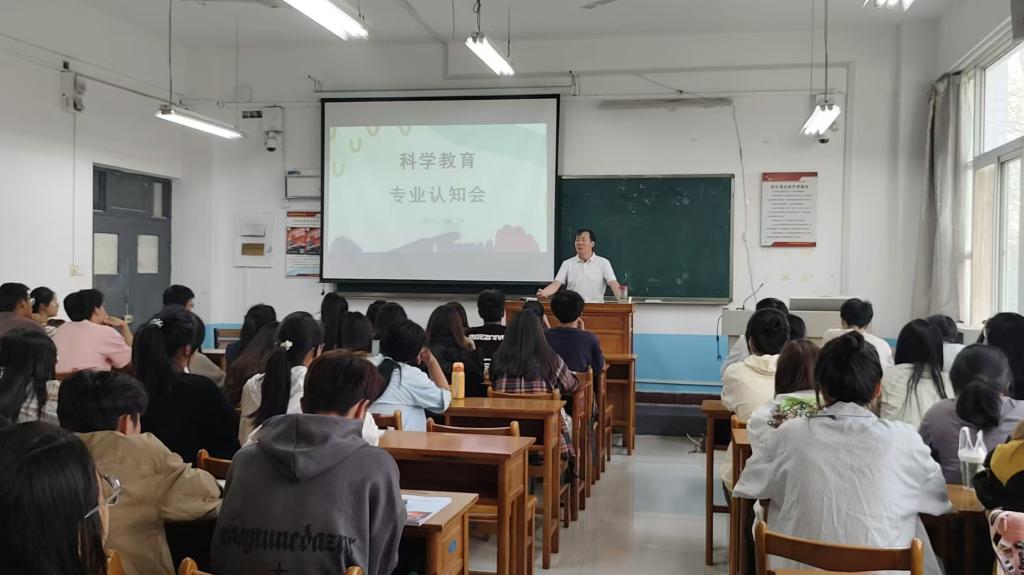 认知会第一项郝丹娜老师向同学们介绍了科学教育专业内涵、素养要求、基础课程、专业实验、必修课程、以及专业建设成效和未来就业方向。