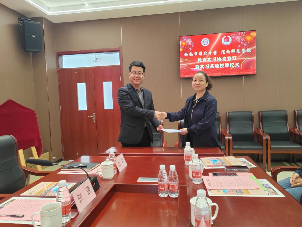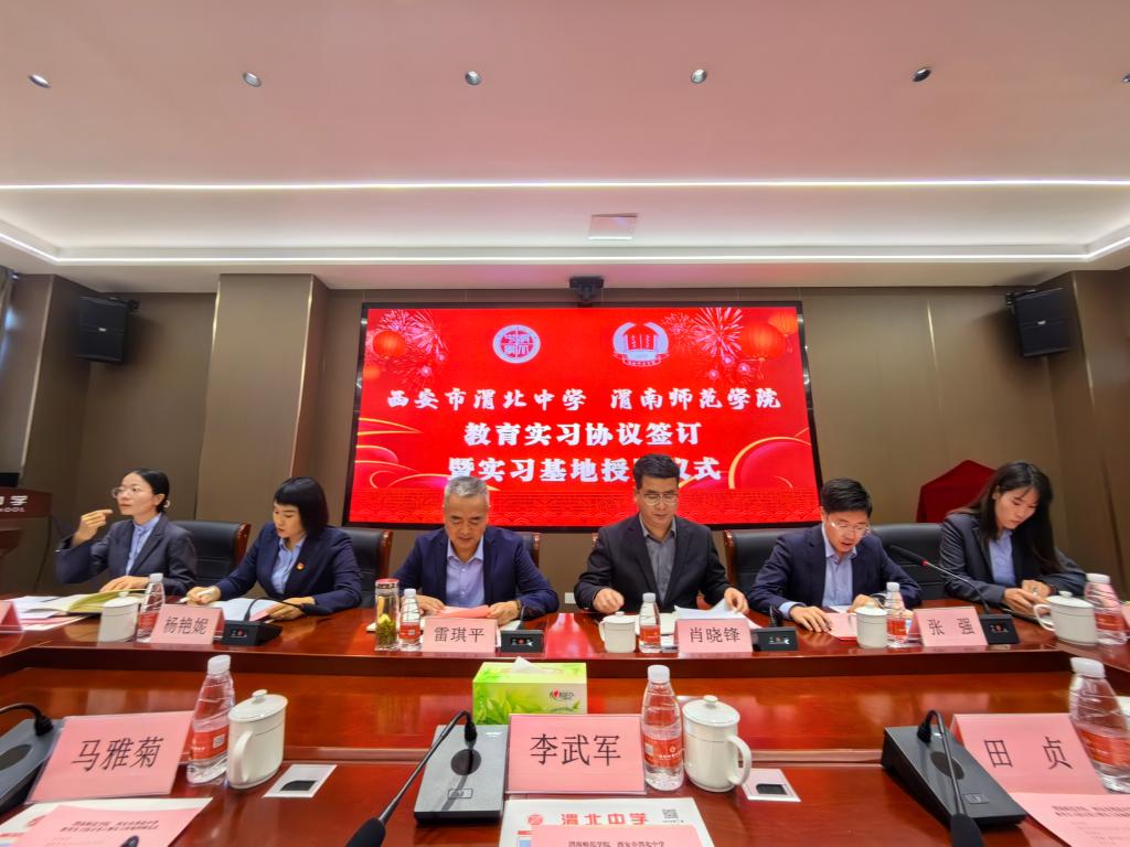 此次签约授牌仪式的成功举办,不仅为我院实习生搭建了一个更好的实习平台,也为双方进一步开展教育合作奠定了坚实基础。我们期待与西安市渭北中学在更多领域展开合作,共同推动教育事业的繁荣发展,为教育强国建设贡献渭师力量。(通讯:马雅菊;审核:李武军)