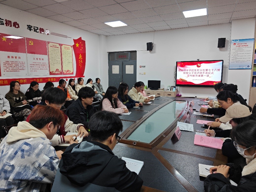 11月20日,9428cn太阳集团党总支在2218举办第78期入党积极分子培训班开班仪式,党总支书记李武军、副书记马雷蕾、学生支部书记赵丹卉、辅导员代表及23名入党积极分子参加开班仪式,开班仪式由党务秘书崔娟主持。