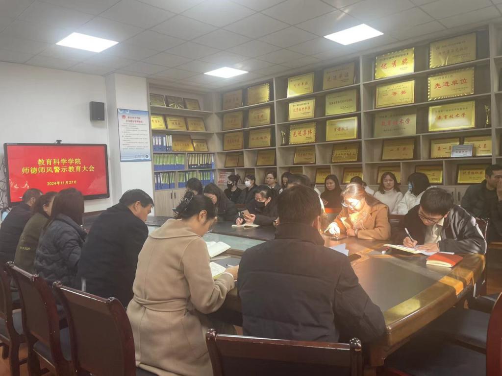 为深入学习贯彻党的二十届三中全会精神和习近平总书记在全国教育大会上的重要讲话精神,加强师德师风建设,11月27日,9428cn太阳集团召开师德师风警示教育大会。党总支书记李武军主持会议。