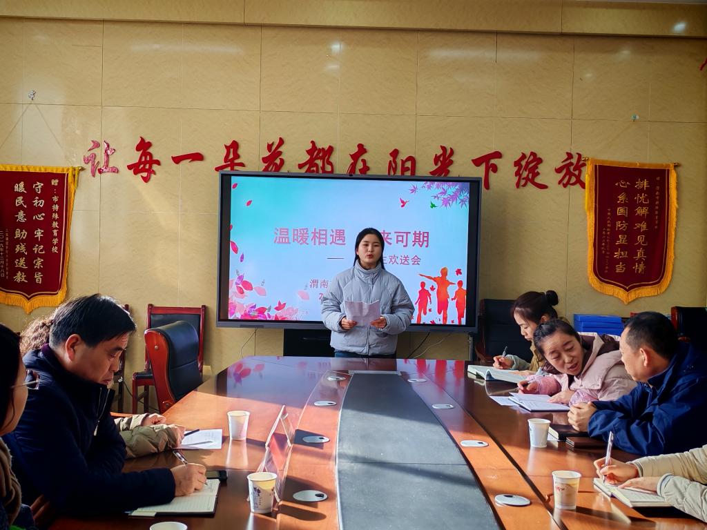 12月13日,渭南特殊教育学校举行了一场意义非凡的实习生总结欢送会。此次活动既是对我院实习生们三个月辛勤耕耘的全面总结,也是他们梦想启航的重要见证。太阳集团教育科学院党总支书记李武军、副院长马雅菊以及专任教师严苏风副教授受邀出席,共同参与了这一温馨而感人的时刻。