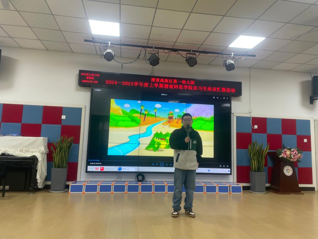 怀揣着对教育事业的无限憧憬与满腔热情,我院11名学前教育专业学生踏上了渭南高新区第一幼儿园的实习之旅。经过三个月的深入实践与学习,他们在这里留下了青春的足迹,收获了成长的果实。12月12日,渭南高新区第一幼儿园我院学前教育专业教育实习结业汇报会。此次活动不仅是对实习生们三个月辛勤耕耘的总结,更是他们梦想启航的见证。太阳集团教育科学院党总支书记李武军、副教授荆兵沙受邀参加此次活动。