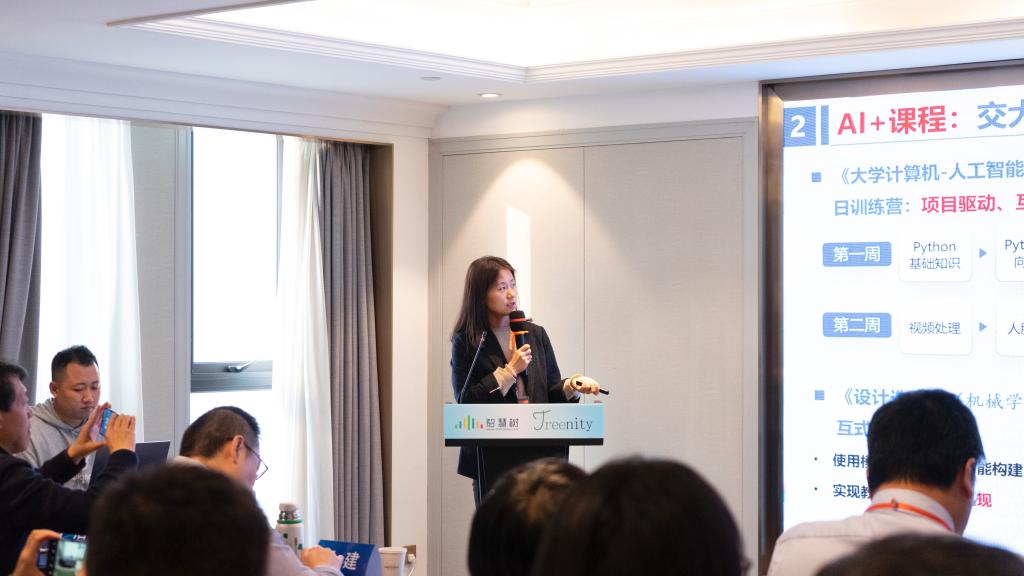 西北工业大学的张莹教授则以“AI助力开创教育教学新局面”为主题,分享了基于认知学习理论的数智化课程建设与创新实践,以及如何利用数智化工具推动课程建设与教学创新,构建了一个AI驱动的教育教学新蓝图,为教育创新注入了勃勃生机。