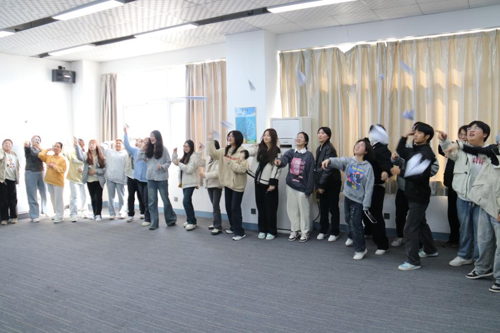 在团体辅导室,孙悦老师以“润心逐梦”为主题,带领同学们开展了“桃花朵朵开”、“鸡蛋变凤凰”、“梦想纸飞机”等一系列妙趣横生的团体心理游戏。互动环节中,欢声笑语此起彼伏,同学们全身心投入,逐渐敞开心扉,在探索中舒缓了压力。这一系列活动不仅让同学们收获了珍贵的知识,更在心底留下了深刻的感悟。活动尾声,同学们郑重地写下自己对未来的梦想,一起放飞承载着梦想的纸飞机,让希望与憧憬在天空中自由翱翔。