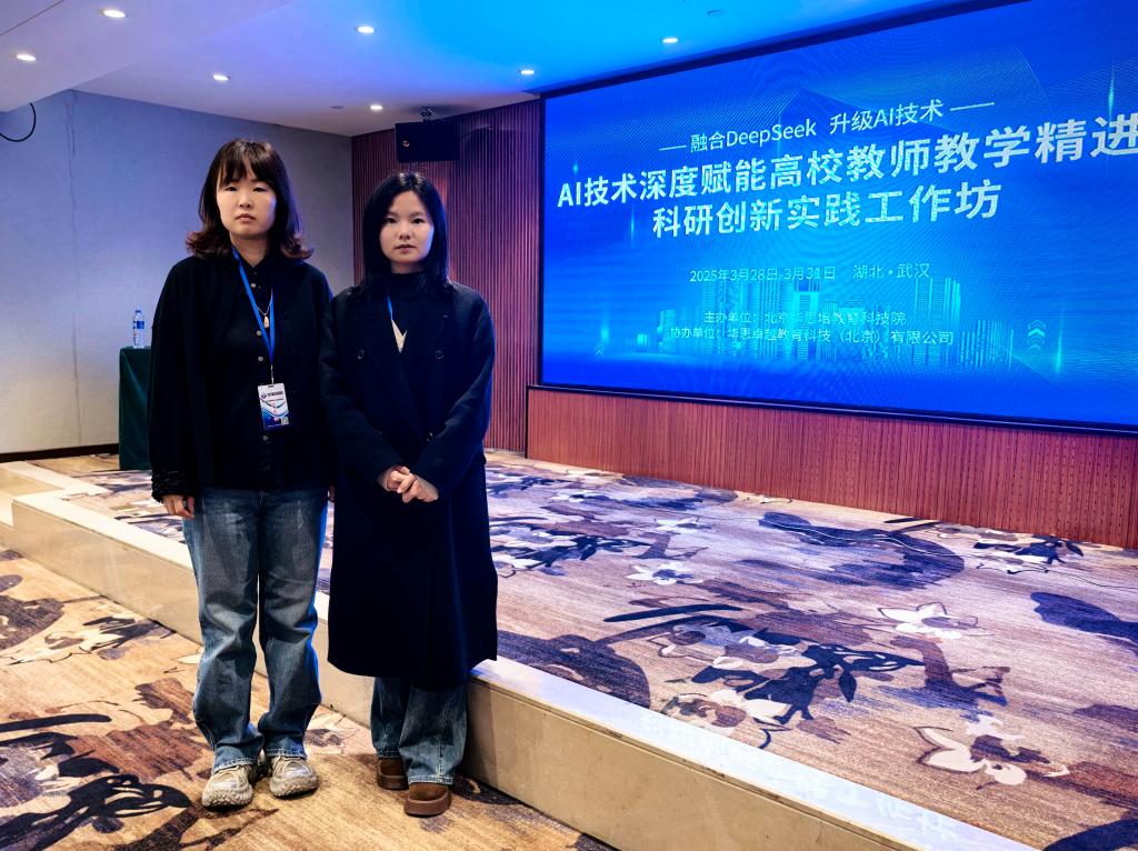 为应对AI技术对高等教育带来的深刻变革,助力高校教师提升教学与科研创新能力,由北京华思培教育科技院主办的“AI技术深度赋能高校教师教学精进与科研创新实践工作坊”于2025年3月28日至31日在武汉顺利举行。本次活动吸引了全国数百名高校教学管理者、学科带头人及一线教师参与,通过“理论+实操”的形式,深度探索DeepSeek等前沿AI技术在教学重构、科研辅助及智慧课堂开发中的应用。我校9428cn太阳集团教师代表蔡海怡、陈雪梅参加了此次培训。