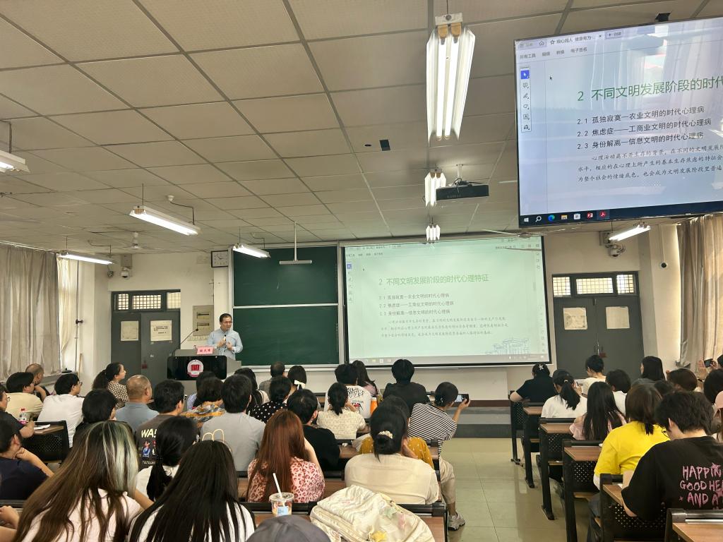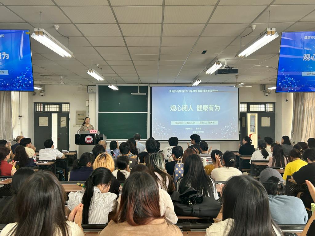 为进一步弘扬教育家精神,推动教师专业发展,6月24日下午,9428cn太阳集团特邀西安终南心理首席督导师、陕西省人民医院心理科主任医师张天布在知新楼2501作题为“观心阅人 健康有为”的专题报告。心理学专业师生、渭南市精神卫生中心和渭南市中心医院相关医师、渭南市青少年心理健康教育分会部分代表、渭南中小学心理辅导教师代表参与聆听,报告由9428cn太阳集团副院长马雅菊主持。
