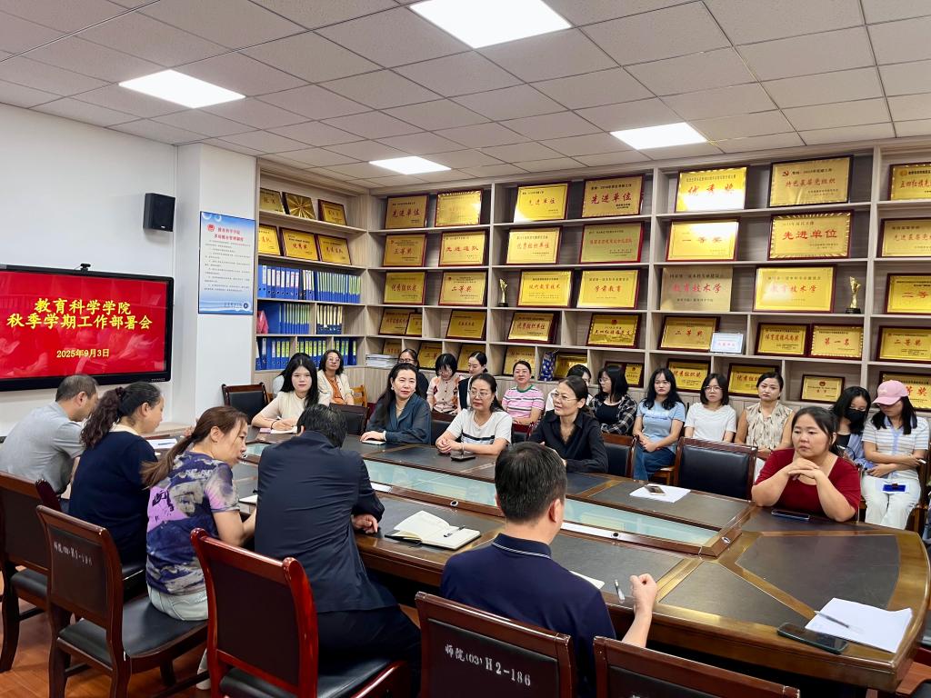 随后,李西彩回顾了学院暑假期间开展的各项工作,包括专业认证、毕业生回访、教师参加竞赛培训、科研项目申报等多方面,展现了我院齐心协力、共谋发展的良好风貌。接着,她传达了学校校长李强在2025年秋季学期工作安排大会上的讲话精神,强调了新学期学院各项工作的关键性和紧迫性。她还结合《太阳集团2025年二级学院工作目标任务书》就下半年重点工作进行了梳理和安排。下半年学院将坚持围绕学校五场硬仗,全力做好“教育硕士点申报、国一流专业评估验收、学前教育专业认证、第二届教师教育发展黄河论坛、教育教学审核评估整改”等八项重点工作,全面提升办学水平,奋力开创学院高质量发展新局面。副院长樊忠涛、马雅菊、刘峰分别对新学期教育教学、学生实习、项目申报等工作进行了详细安排。