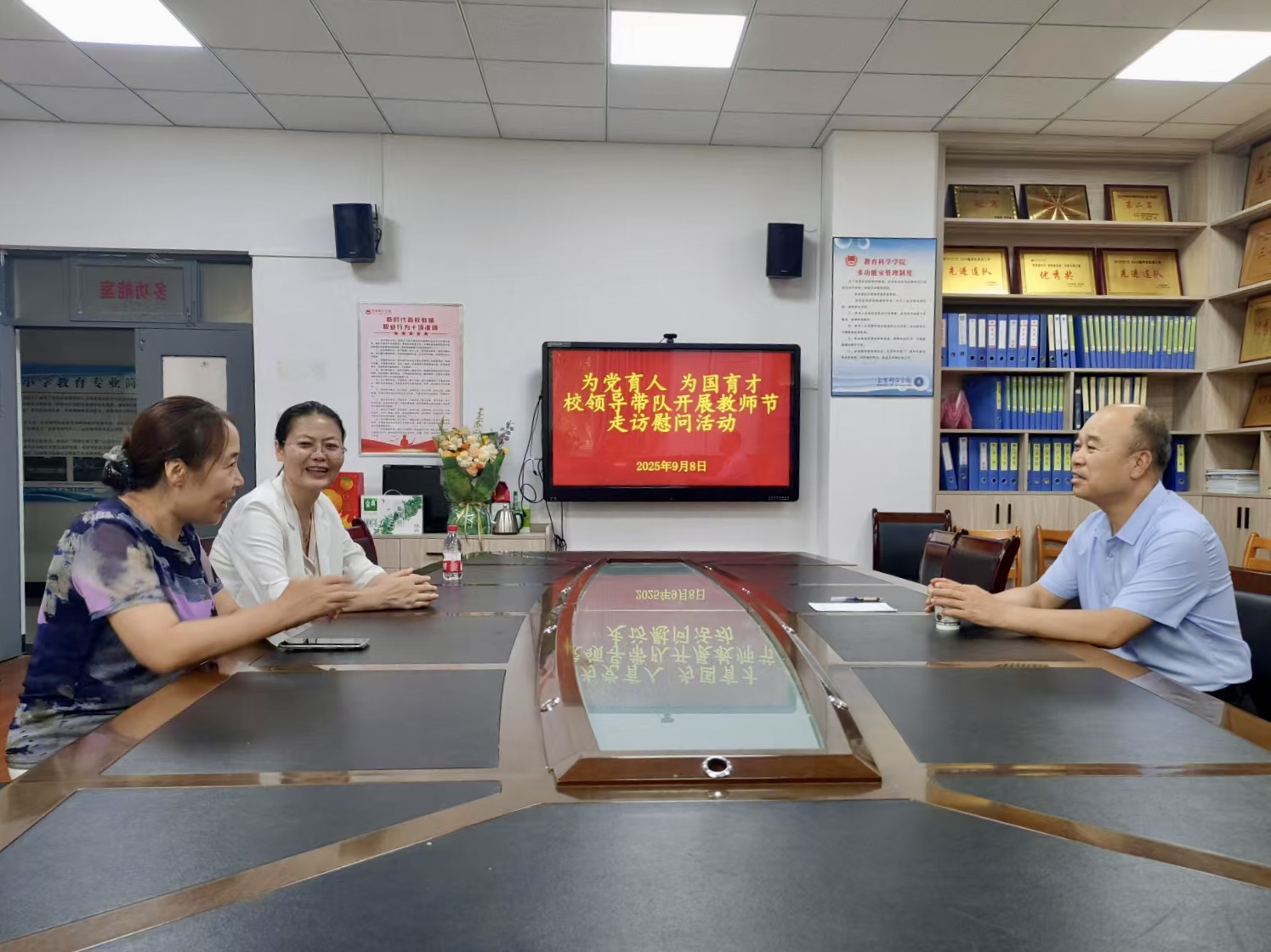 在教师节来临之际,9月9日下午,学校副校长卢爱刚在9428cn太阳集团院长李西彩、副院长马雅菊的陪同下,前往学院2218会议室看望慰问骨干教师严苏凤教授,向其致以节日的诚挚祝福,并围绕学校教学、科研、人才培养、申硕攻坚及高质量发展等核心工作开展调研交流。