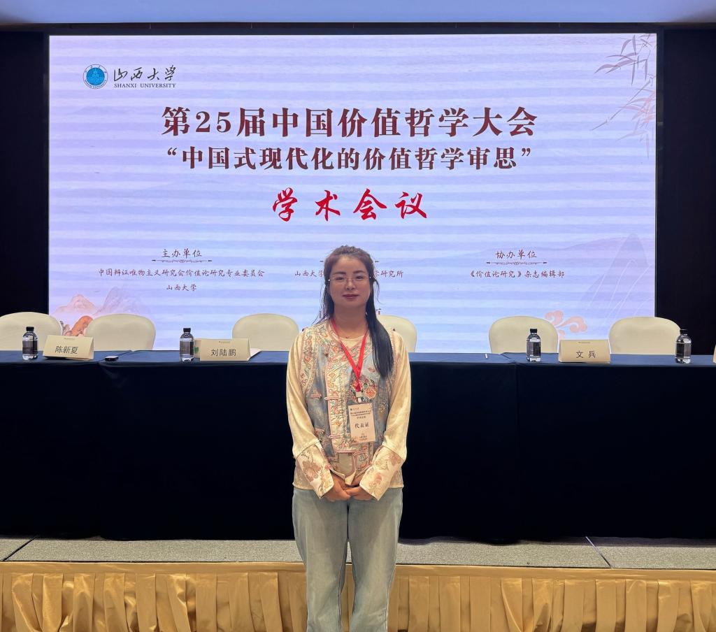 2025年9月19日至21日上午,以 “中国式现代化的价值哲学审思”为主题的中国价值哲学大会在山西太原召开。本次大会吸引了来自全国高校、科研院所的500余名专家学者,我院教师郝丹娜参加了此次盛会,并在会上进行了精彩的分享。