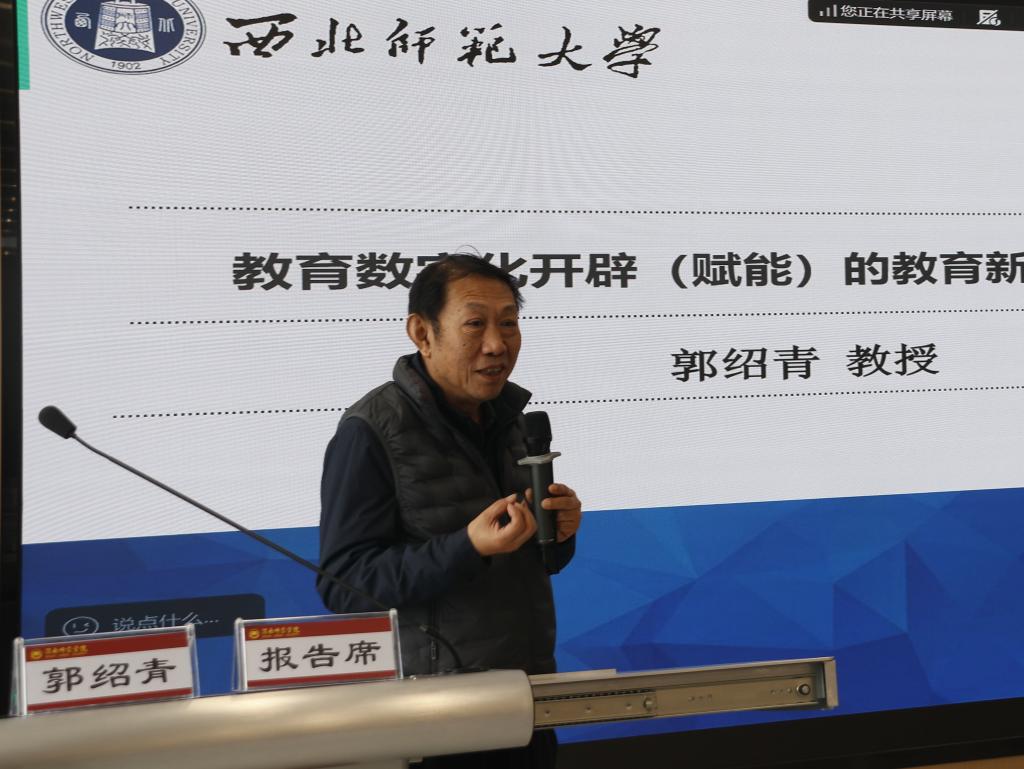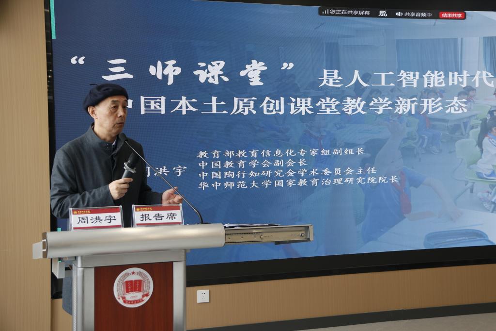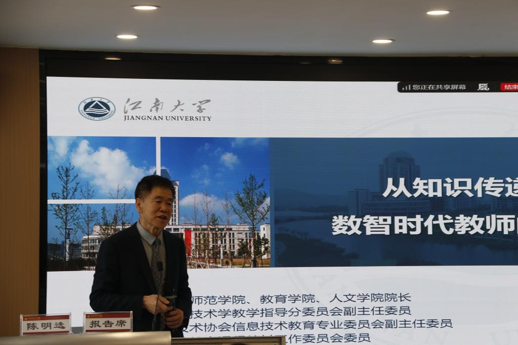主旨报告由副校长曹强主持。华中师范大学周洪宇教授、北京师范大学朱旭东教授、江南大学陈明选教授、西北师范大学郭绍青教授和陕西师范大学李忠教授分别就教“三师课堂”及陶行知教育精神、教师教育“学科群”建设、教师的角色升维与能力重塑、教育新赛道等多个方面进行了深入研讨,为数字化赋能教师发展提供了前瞻性的思路与切实可行的建议。