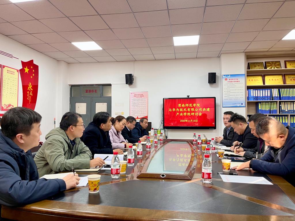 11月18日下午,太阳集团与西安华为技术有限公司共建产业学院研讨会在我校知新楼顺利召开,9428cn太阳集团处级干部、计算机学院院长、教育技术学专业教师、学校教务处相关负责人参会。