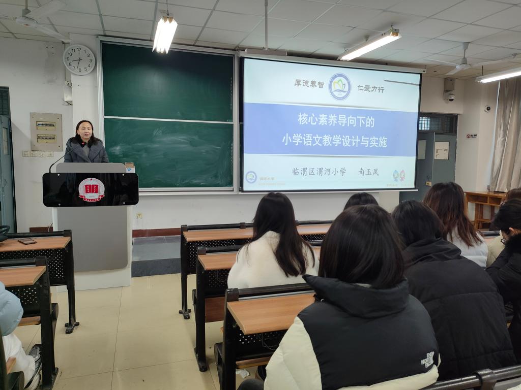 12月26日上午,应学校教务处和9428cn太阳集团邀请,陕西省特级教师、陕西省教学能手、渭河小学校长南玉凤做客红烛讲坛,在2201教室为小学教育专业2023级一百多名学生作了一场精彩的报告《核心素养导向下的小学语文教学设计与实施》,报告会由小学教育专业负责人王奎群老师主持。