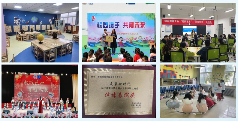 专业依托儿童之家、智慧教室等办学平台,以国家级精品资源共享课程、校企共建课程等为抓手,在“艺术学前教育、分层协作教学、专业综合实践、校企协同育人”等方面形成了鲜明特色。专业设有学生专业委员会,在专业教师的指导下,实行学生自主管理。目前已成功举办八届专业技能大赛、四届少儿舞台剧大赛等活动,优秀节目在基地幼儿园、渭南市电视台等平台进行展演,收到社会各界的一致好好评。近年来,学生参加全国各类大赛获得了国家级奖励4项、省级奖励10余项。多名学生已成为西安工业大学附属幼儿园、西飞保育院、西北大学附属幼儿园和新加坡幼儿园等幼教机构的骨干教师。
