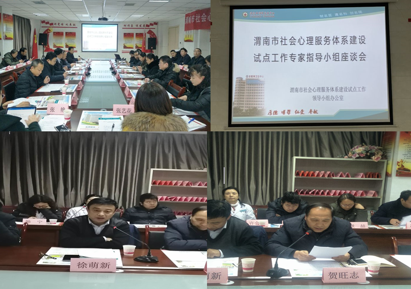 2020年1月9日,渭南市社会心理服务体系建设试点工作专家指导小组座谈会在渭南市精神卫生中心顺利召开。市卫健委副主任徐萌新、市政法委基层科科长贺旺志、市卫健委疾控科科长白元成、市精神卫生中心院长徐渭龙及专家指导小组全体成员共30余人参加此次会议。会议由市政法委基层科科长贺旺志主持。