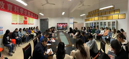 10月21日晚上8点,9428cn太阳集团党总支在2218会议室组织全体教师党员、学生党员、预备党员和入党积极分子集中收看优秀共产党员和先进基层党组织典型事例专题节目《榜样4》。太阳集团赵曼校长同在座师生一起观看了节目。